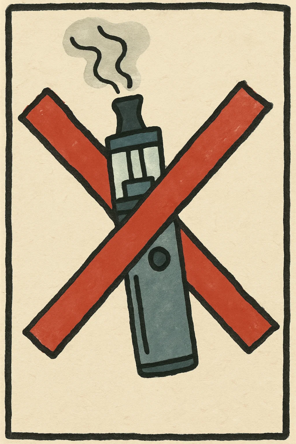 "We're talking poster-sized warnings about metal and electronics. There's literally a cartoon drawing of a vape pen with a big red X through it. It's like someone drew it specifically for people who can't read, which apparently includes half our patient population."