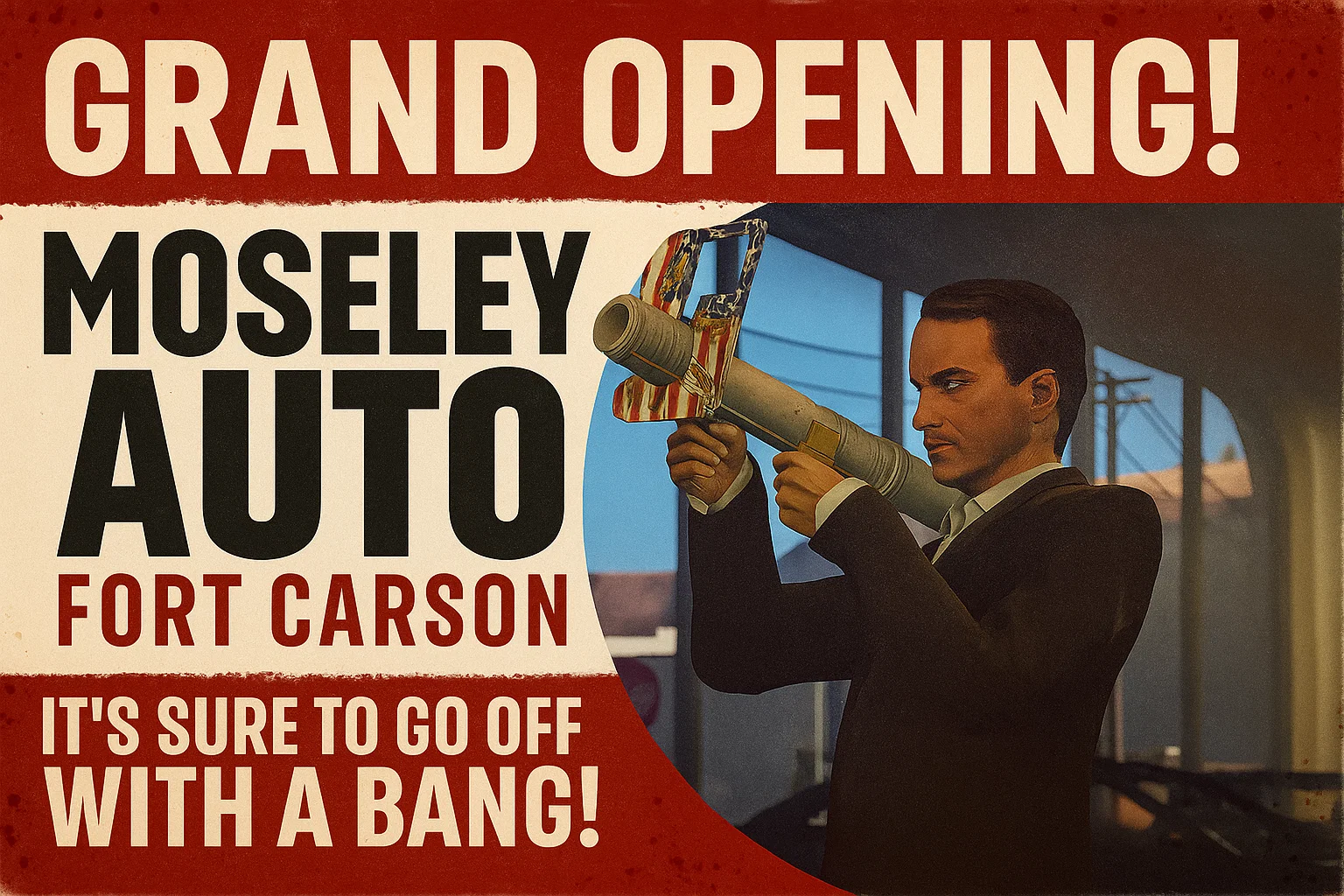 Fort Carson, San Andreas – In a town better known for tumbleweeds, dusty main roads, and that one diner with a suspiciously long “out of order” sign on its soda machine, something shiny is finally rolling in. Moseley Auto has announced the grand opening of its brand-new dealership in Fort Carson, and by the way they’re advertising it, you’d think Vinewood was moving in. Their marketing promises raffles, giveaways, music, and enough fireworks to keep the volunteer fire department nervously on standby.